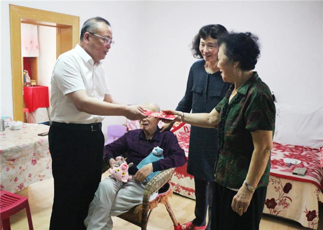 看到國(guó)資委主任及城投集團(tuán)總經(jīng)理親自上門(mén),李德春老人的愛(ài)人和女兒非常感動(dòng)。孫百如拉著老人的手,關(guān)切地詢問(wèn)他的生活起居、子女工作等情況,并了解到老人腿腳不便,需要常年雇人照顧老人起居生活。