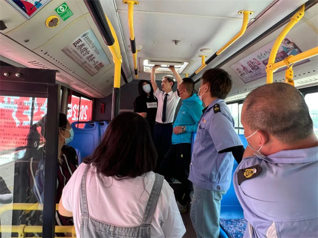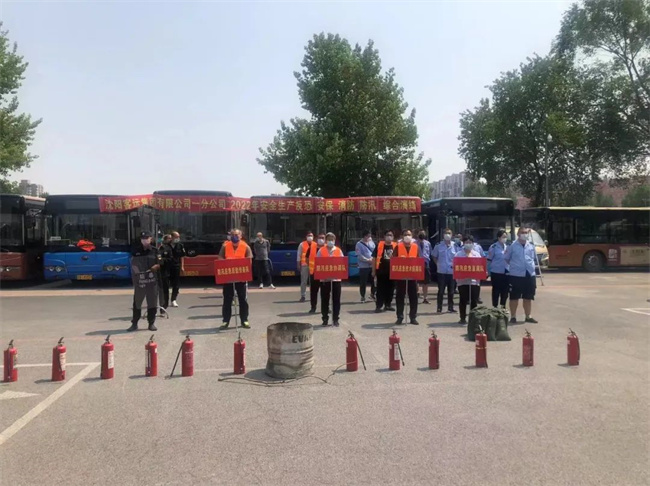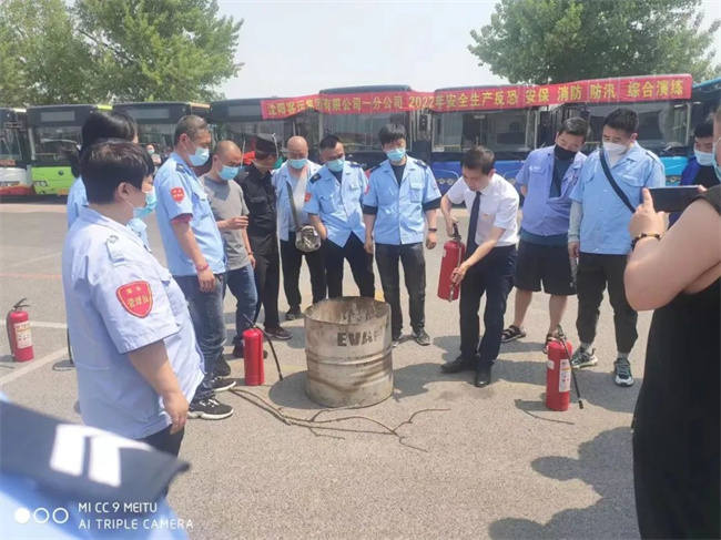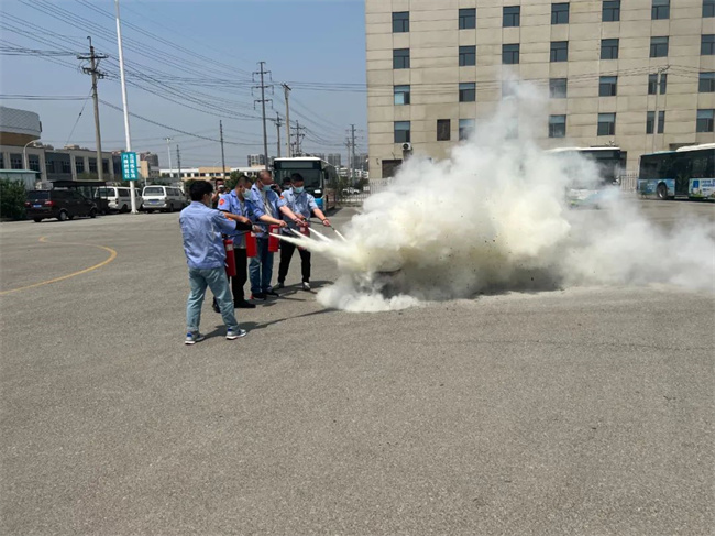 會后,在公司院內(nèi)進(jìn)行實地演練,模擬公交車輛突發(fā)火災(zāi)時,駕駛員在應(yīng)急情況下緊急停車,疏散乘客,正確使用滅火器進(jìn)行滅火等內(nèi)容。