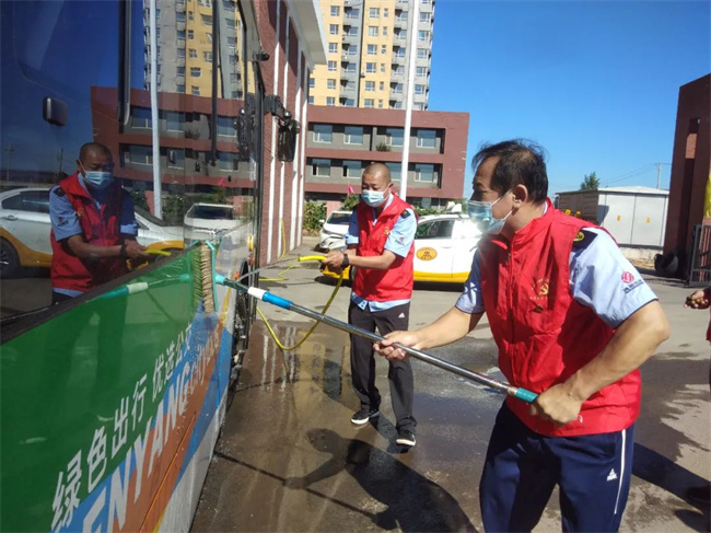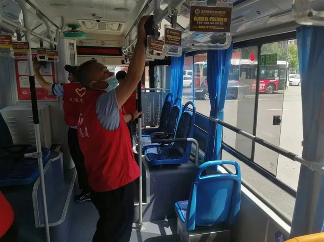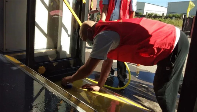通運(yùn)公司志愿服務(wù)隊(duì)來到239路車隊(duì),細(xì)化防控措施,在公交停車場對乘客候車區(qū)進(jìn)行不間斷消毒,同時(shí)協(xié)助公交駕駛員嚴(yán)格實(shí)行公交車返場后的集中消毒及車輛通風(fēng)、清潔等工作,特別是對車廂內(nèi)座椅、扶手等乘客易接觸的部位進(jìn)行深度消殺,做到不留死角、不留盲區(qū),全方位保障乘客出行安全。