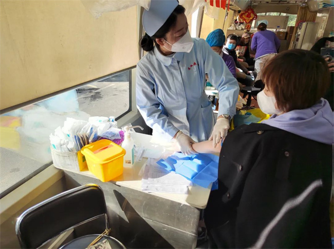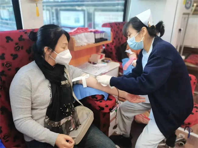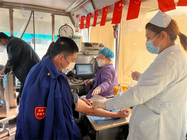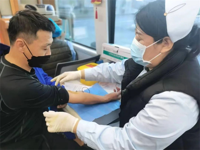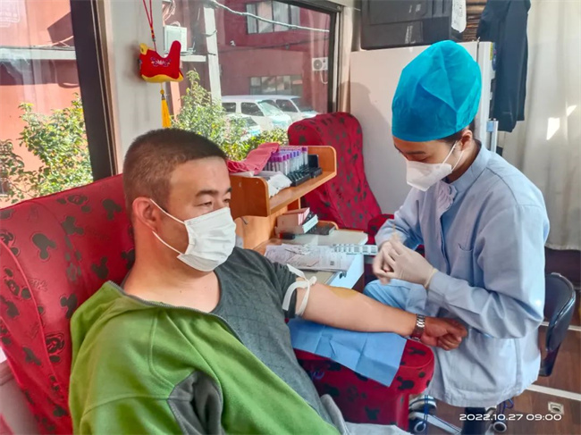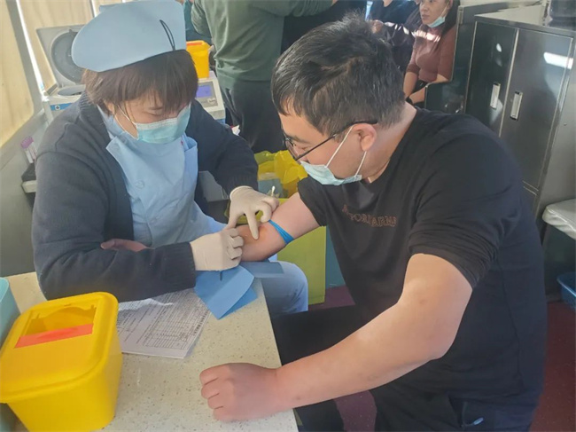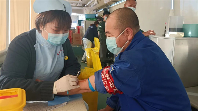 活動中,參加獻血的職工認真填寫獻血登記表,積極配合醫(yī)務人員進行血壓測量、抽血化驗等程序,血液檢驗合格后正式進入采血步驟。