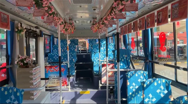 此次活動(dòng),利用公交車體進(jìn)行雷鋒精神宣傳,結(jié)合公交車覆蓋面大、輻射范圍廣、服務(wù)人群多等自身行業(yè)特點(diǎn),先期以258路車隊(duì)為代表,以“弘揚(yáng)雷鋒精神 爭(zhēng)當(dāng)振興先鋒”為主題進(jìn)行車輛布置,車廂外統(tǒng)一設(shè)計(jì),車廂內(nèi)增添雷鋒元素,充分利用公交車這一有利載體,展示雷鋒精神,傳承紅色基因。