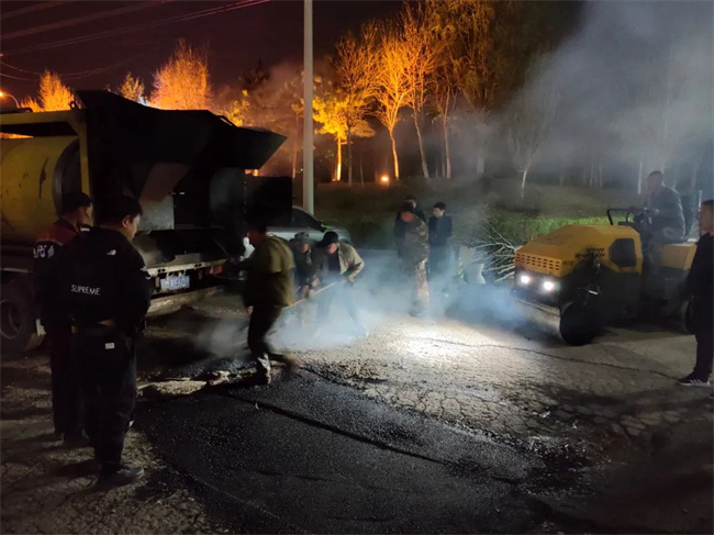 4月12日晚19時,劉嘉巖陪同市政部門工作人員來到實地現(xiàn)場查看道路狀況,確定了道路修補方案。經(jīng)過兩個多小時的施工,路面破損問題得到了有效解決。