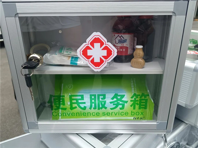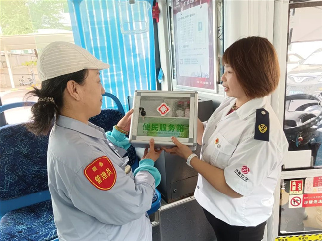209路車隊的每臺單車上新增配置了印有“紅十字”標志的便民服務箱,里面放置了口罩、速效救心丸、止血帶、碘伏等日常使用的各類物品。廣大乘客在乘坐公交車時,一旦出現(xiàn)緊急情況,可以得到及時有效的幫助和初級救治。