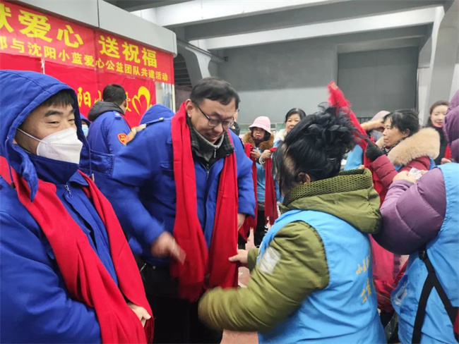 12月22日上午10點,沈陽小藍愛心公益團隊走進211.222路公交車隊開展“迎新年獻愛心送祝?!蔽繂柣顒印?/p>