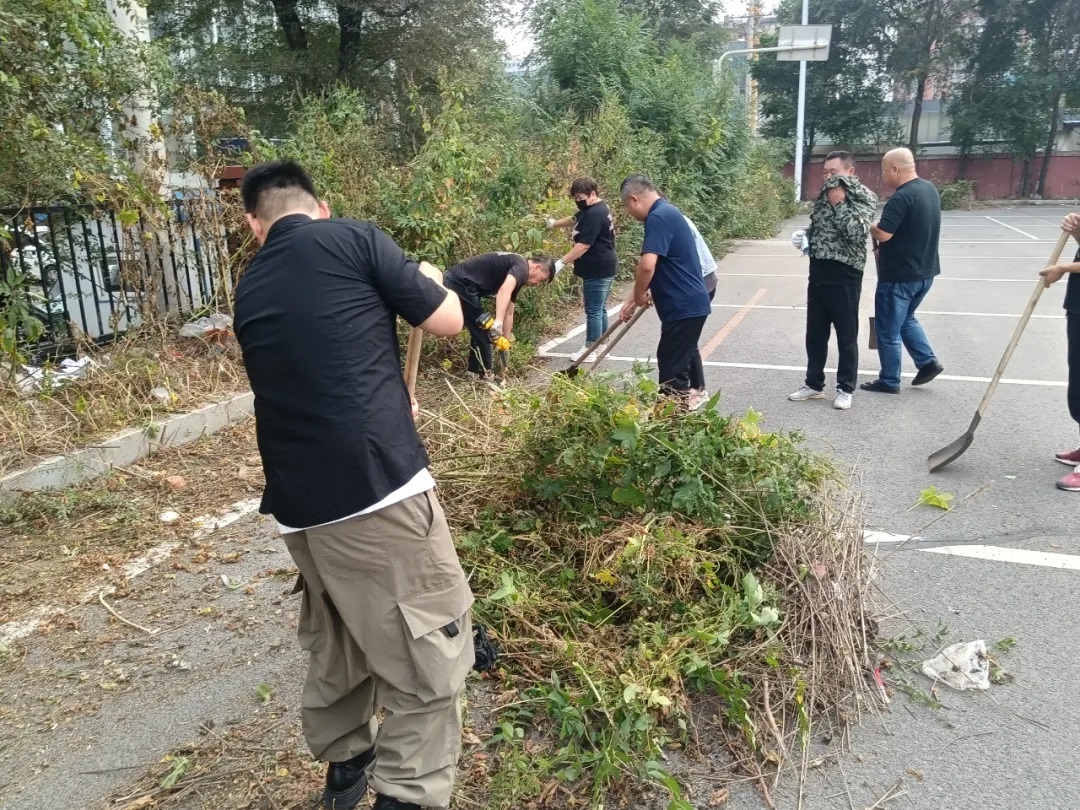 場(chǎng)面一:9月29日,黃河公司40余名機(jī)關(guān)干部手持鐮刀、鐵鍬、掃把等工具,對(duì)公司場(chǎng)院周邊雜草進(jìn)行了大清理,對(duì)院內(nèi)衛(wèi)生進(jìn)行了清掃,以嶄新形象迎接國(guó)慶節(jié)的到來(lái)。
