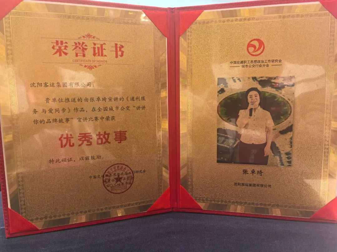 由張卓琦宣講的作品在全國城市公交“講講你的品牌故事”宣講比賽中榮獲優(yōu)秀故事獎(jiǎng)。