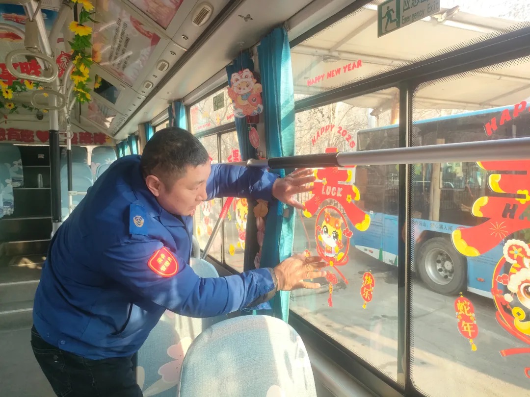 據(jù)了解,元旦前夕,沈陽(yáng)客運(yùn)集團(tuán)按照全市“我是雷鋒”——沈陽(yáng)市窗口行業(yè)文明誠(chéng)信服務(wù)寵客(qiě)行動(dòng)工作安排,落實(shí)全市“雙節(jié)”節(jié)日氛圍布置工作要求,積極開(kāi)展“布置車(chē)廂,扮靚沈陽(yáng)”行動(dòng),各車(chē)隊(duì)利用行車(chē)間歇和休息時(shí)間裝扮車(chē)輛,懸掛新年拉花、紅燈籠,張貼新年窗花及融入“蛇年”元素的貼紙等。目前,已有1188臺(tái)途經(jīng)主要街路、景區(qū)、商業(yè)街區(qū)的公交車(chē)輛完成了裝飾,車(chē)內(nèi)年味十足,客運(yùn)集團(tuán)計(jì)劃在春節(jié)之前完成全部運(yùn)營(yíng)車(chē)輛的裝飾布置工作。