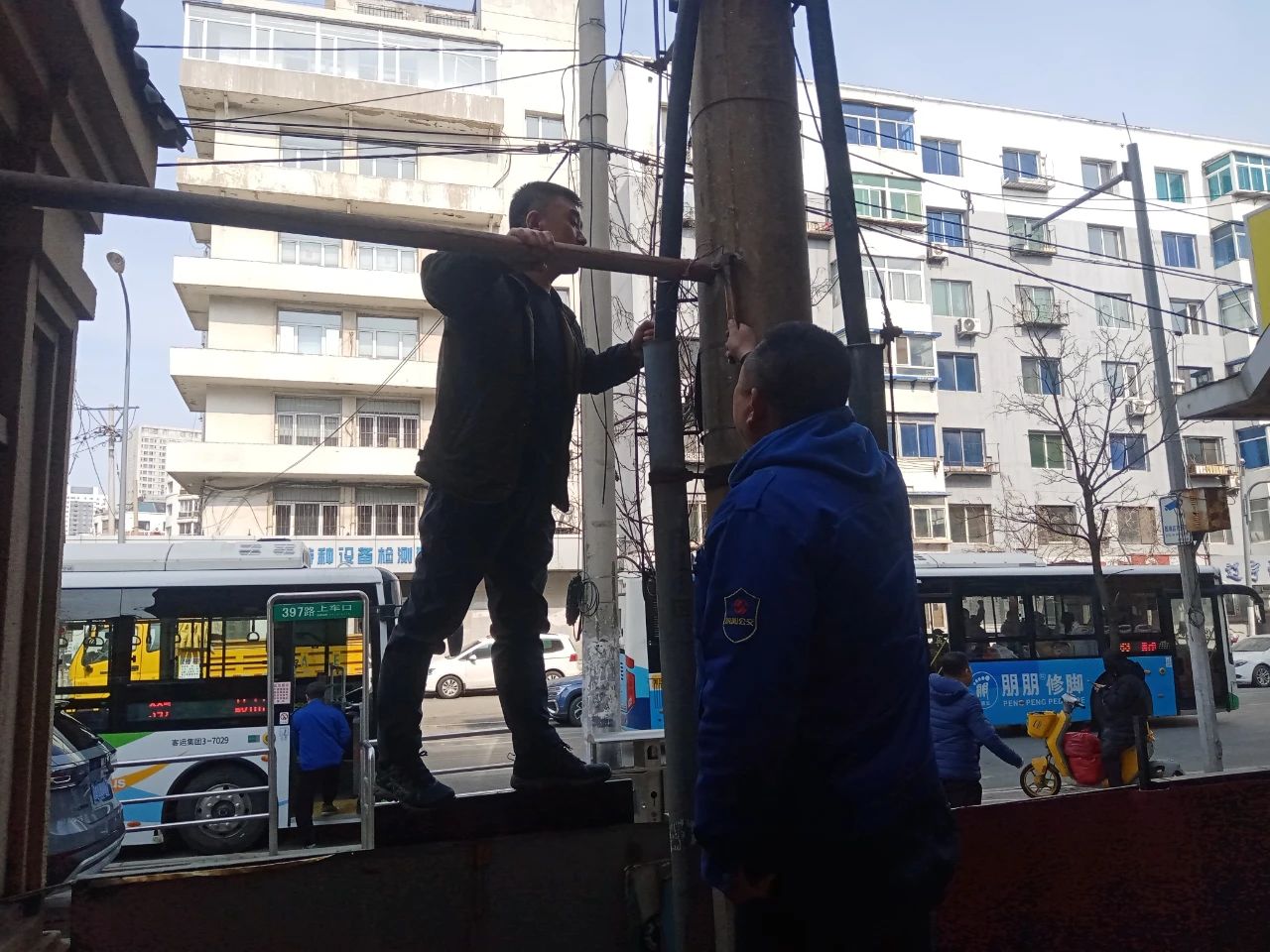 3月15日,397路車隊(duì)駕駛員張政仙用一把扳手、一顆熱心,將雷鋒精神化作實(shí)際行動(dòng),主動(dòng)利用站停間隙時(shí)間幫忙加固維修站房。