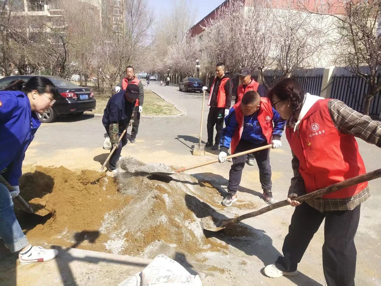 活動中,志愿者們對越冬垃圾、積存垃圾、衛(wèi)生死角等進行全面清理,為小區(qū)鋪設(shè)電動車停車位場地地磚。大家干勁十足,齊心協(xié)力,圓滿完成了工作,此次活動排除了安全隱患,凈化、美化、亮化了社區(qū)環(huán)境,得到了社區(qū)居民們的一致好評。