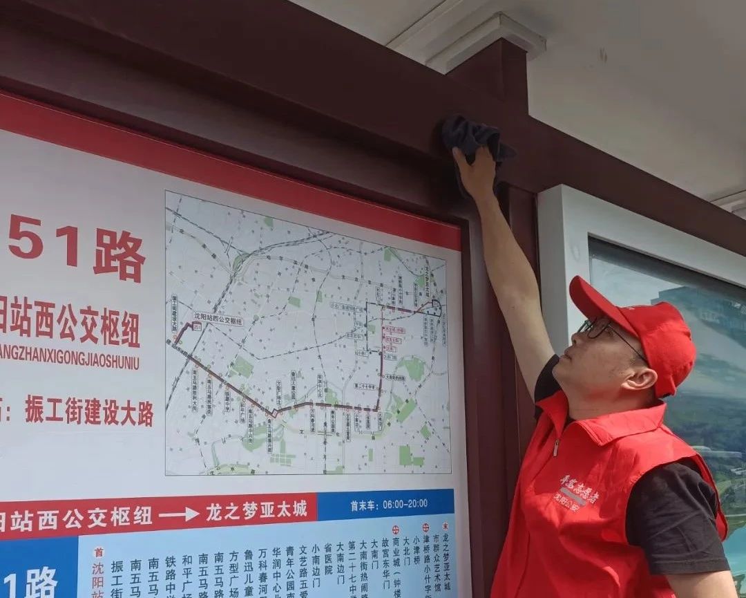 通運(yùn)公司志愿者化身清潔能手與文明向?qū)?,仔?xì)擦洗站牌、扶欄,清掃車廂每個角落,讓候車環(huán)境煥然一新;同時熱情引導(dǎo)乘客有序乘車、提拿行李。