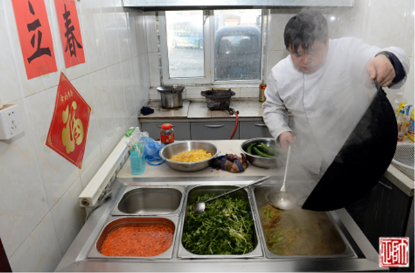 “哎呦,今天烙春餅啦!難怪老遠兒就聞見了香味兒??欤o我先來兩張!”2月3日大年初七,是節(jié)后的第一個工作日,恰逢立春。11時左右,211路駕駛員張智剛跑完一圈兒回到大北門終點站,就被食堂的飯香吸引過去。