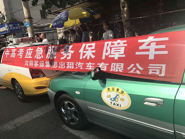 作為國有出租汽車企業(yè)代表的沈陽客運集團出租有限公司也在6月7日、8日兩天派出8臺出租車作為高考應(yīng)急車輛,在和平區(qū)126中學(xué)、134中學(xué)門前愛心助力,免費為考生和家長服務(wù)。這8臺車的駕駛員不僅駕駛技術(shù)出色,還是充滿愛心的優(yōu)秀志愿者,其中模范出租車司機夏尊義和“拾百萬玉器”受到98.6及新北方報道的好司機呂成明,都作為志愿者為考生免費服務(wù)。