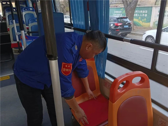 10月31日,298路駕駛員何志強(qiáng)在出車前將自己事先準(zhǔn)備好的愛心坐墊套在了乘客座椅上。