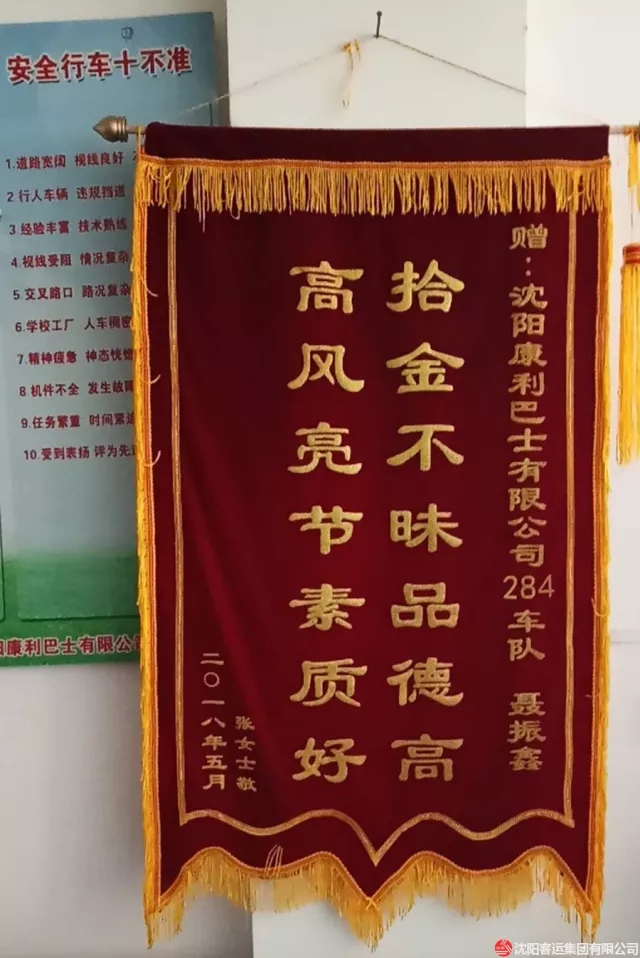 近日,康利公司284路車隊(duì)接連收到兩面錦旗。5月8日,284路駕駛員劉曉峰在車輛抵達(dá)終點(diǎn)站時(shí),發(fā)現(xiàn)路邊有一部手機(jī),好心的劉曉峰連忙撿起手機(jī),因?yàn)檫€要行車,便將手機(jī)上交車隊(duì),請車隊(duì)工作人員幫忙尋找失主。工作人員通過各方努力,最終找到了失主薛先生。“手機(jī)雖不是很貴重,但里面有我很重要的資料和照片,本來我都不抱希望了,沒想到這種拾金不昧的好人好事也能發(fā)生在我的身上!”失主薛先生激動(dòng)地說,為表達(dá)自己的感激之情,薛先生親手把一面錦旗送到了劉曉峰手中。
