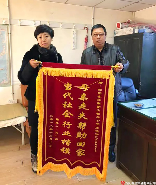 12月6日,走失老人家屬將一面寫有“母親走失幫助回家 當(dāng)代社會行業(yè)楷?!钡腻\旗送到公司,公司才了解王艷宇所做的善舉。